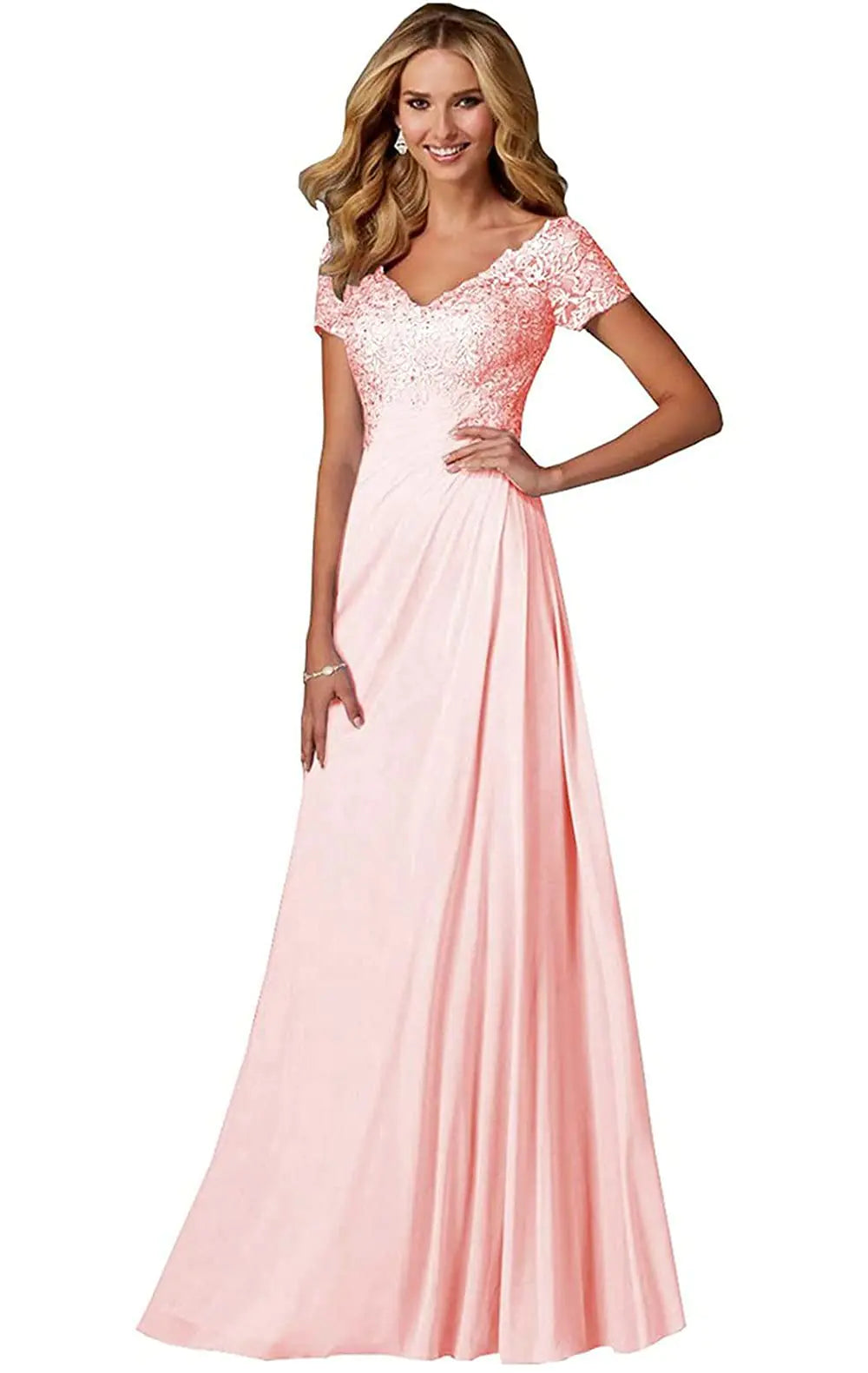 Chiffon Mother Bride Dresses for Wedding Laces Applique Mother of The Birde Dresses Aline Blush Pink-2