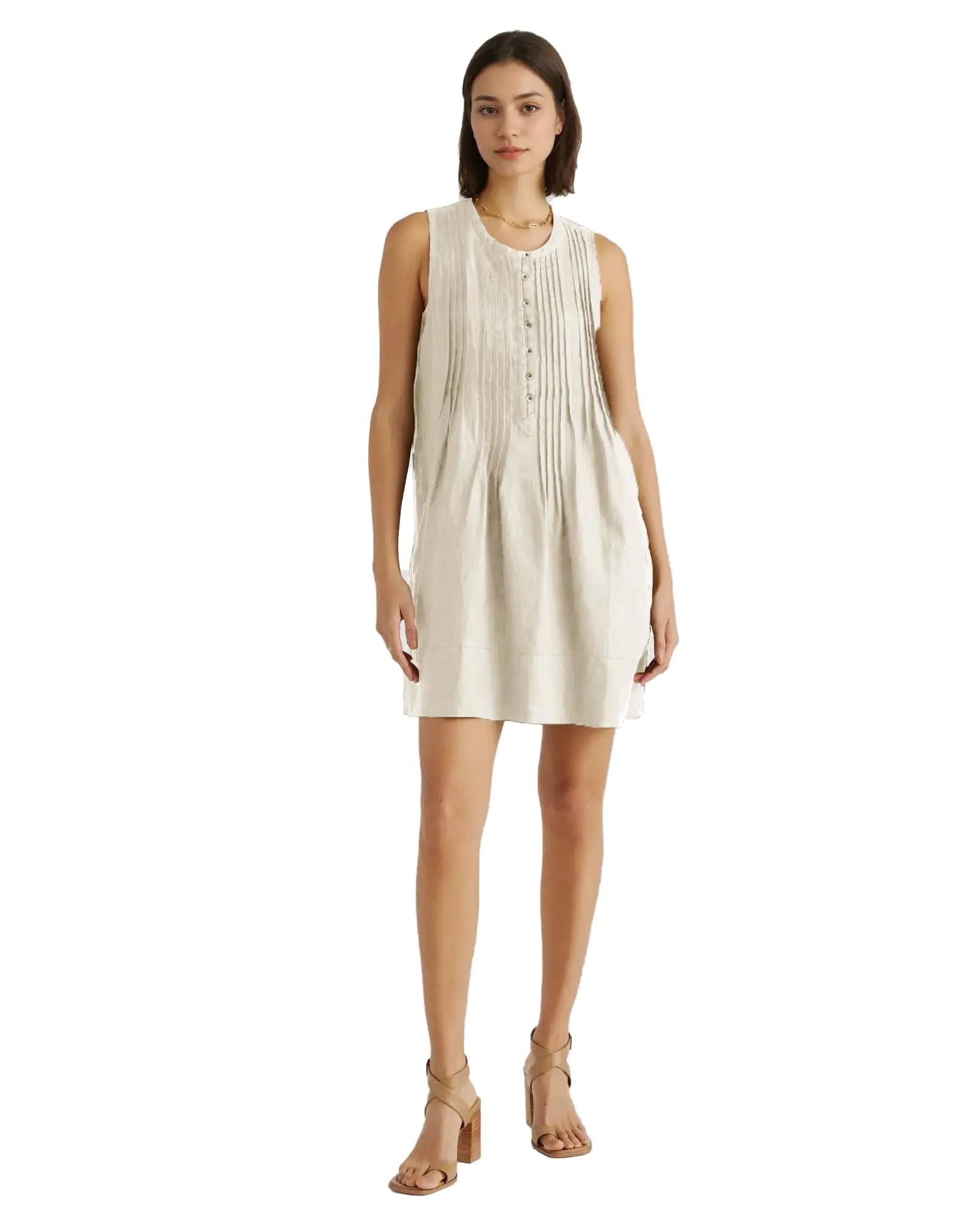 Gnveub Womens Sleeveless Beach Dresses Summer Shirt Dresses Casual Swing Mini Dresses 2024(Light KhakiS)